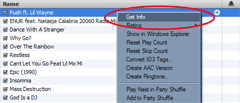 4. Şimdi listenizde bulunan şarkılardan birini seçin. Bu şarkının üzerine sağ tıklayın ve açılan listede ‘Get Info’ seçeneğine tıklayın.